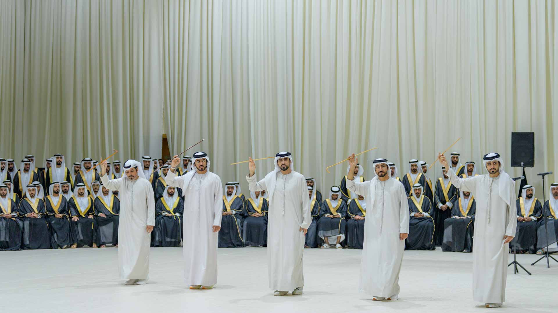Sheikh Dr Salem bin Abdulrahman Al Qasimi and the attendees then enjoyed a series of performances by folk and national groups celebrating the second mass wedding, which brought together 1,100 brides and grooms from across the UAE. The performers presented traditional songs that highlighted the joy of the families and their love for the nation, showcasing authentic Emirati heritage.