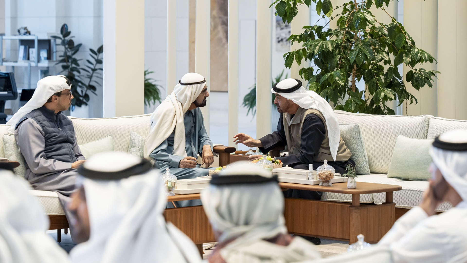 The meeting was attended by His Highness Sheikh Khaled bin Mohamed bin Zayed Al Nahyan, Crown Prince of Abu Dhabi; His Highness Sheikh Maktoum bin Mohammed bin Rashid Al Maktoum, First Deputy Ruler of Dubai, Deputy Prime Minister and Minister of Finance; His Highness Sheikh Hamdan bin Zayed Al Nahyan, Ruler’s Representative in the Al Dhafra Region; Lieutenant General His Highness Sheikh Saif bin Zayed Al Nahyan, Deputy Prime Minister and Minister of the Interior; His Highness Sheikh Hamed bin Zayed Al Nahyan; His Highness Sheikh Abdullah bin Zayed Al Nahyan, Deputy Prime Minister and Minister of Foreign Affairs; His Highness Sheikh Khaled bin Zayed Al Nahyan, Chairman of the Board of Trustees of the Zayed Higher Organisation for People of Determination, along with a number of sheikhs and senior officials.