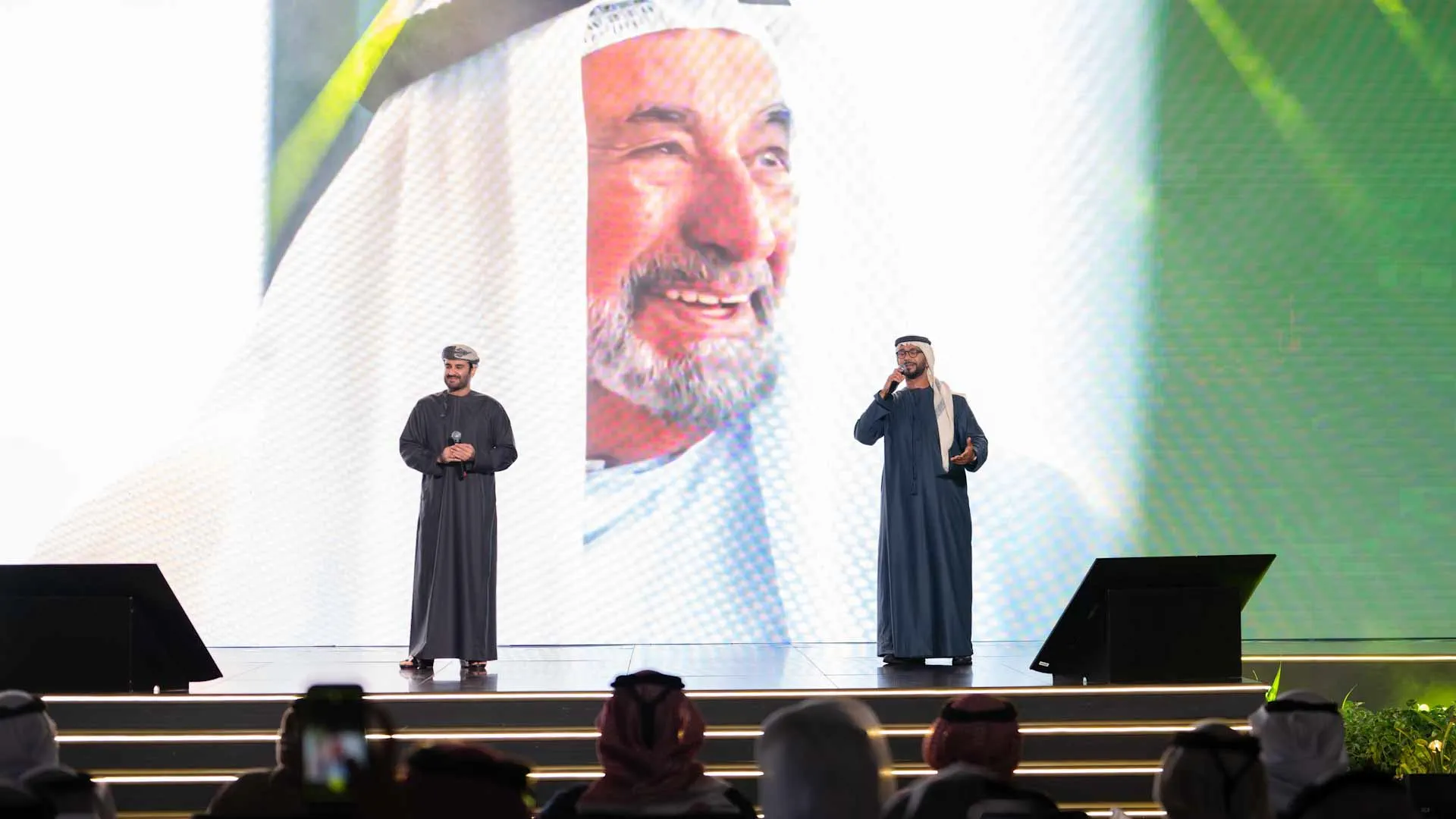 The ceremony featured the premiere of the song “Here is Sharjah,” created in collaboration with Sharjah Radio, part of the Sharjah Broadcasting Authority. The song was performed by artists Salah Al Zadjali and Fayez Al Saeed, and its lyrics and melody highlighted Sharjah’s cultural and humanitarian importance, reflecting a deep sense of belonging and pride in national identity. The audience responded with enthusiastic applause, sharing in the pride and joy of this new artistic work.