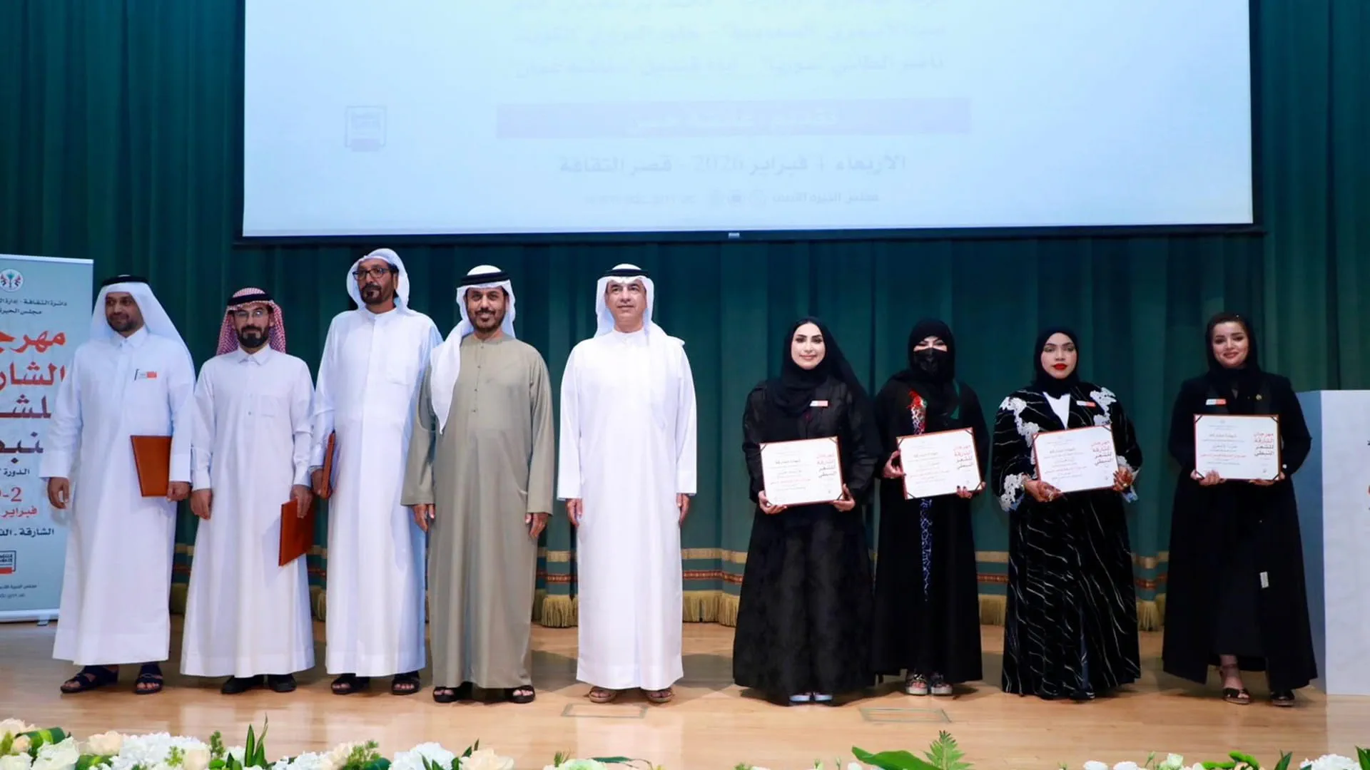 The evening, presented by media personality Aisha Hassan, featured a distinguished group of poets: Hazim Al Hajri (UAE), Mohammed bin Saeedan (Qatar), Saba Al Asmari (Saudi Arabia), Khulood Al Barrari (Kuwait), Nasser Al Taie (Syria), and Ayam Qandeel (Oman).